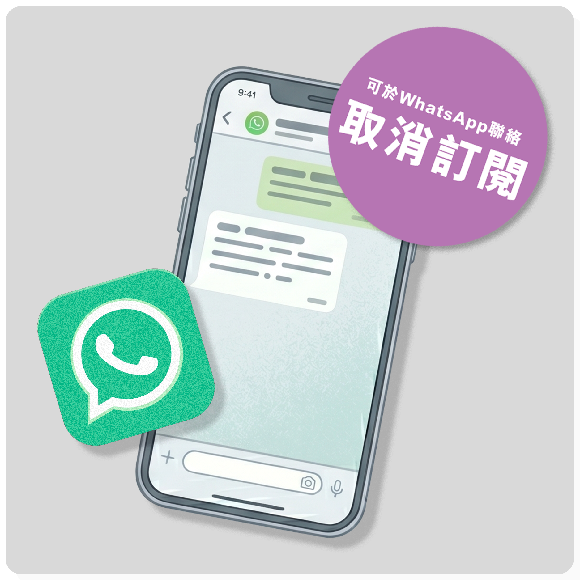 • To cancel your subscription, please contact us via WhatsApp (如欲取消訂閱,可透過 WhatsApp 聯絡我們辦理,或您亦可以自行於網頁內取消訂閱。)